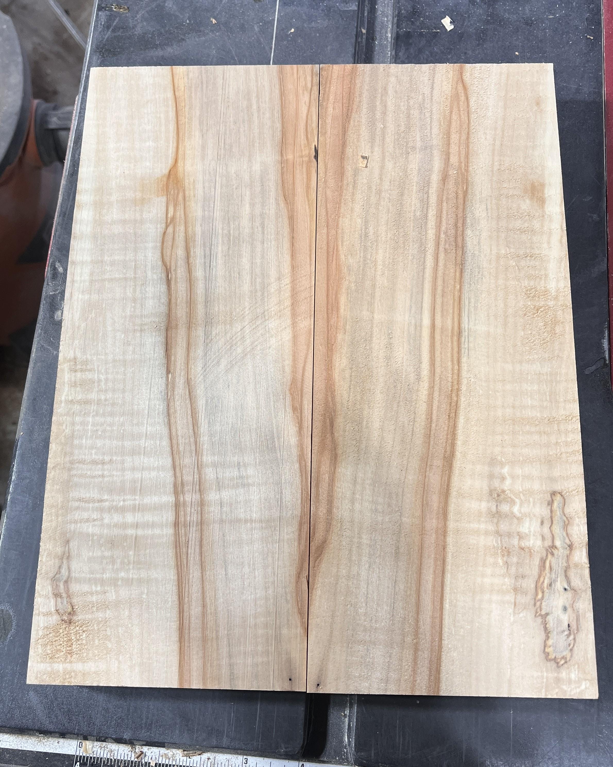 (See the photos of the actual book matching process: 1) original wood block 2) sliced in half, 3) flipped to show matching grain. I can match the inside joint or outside joint depending on the preferred appearance).